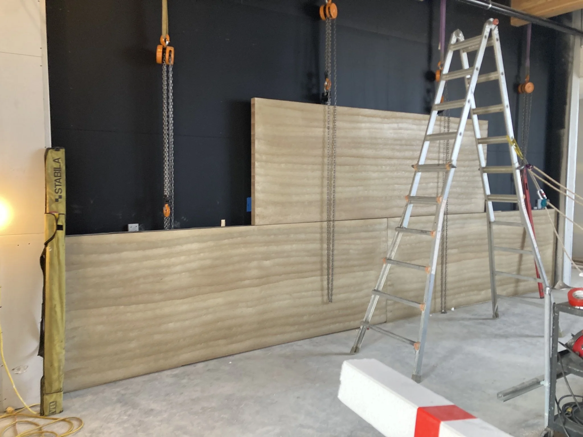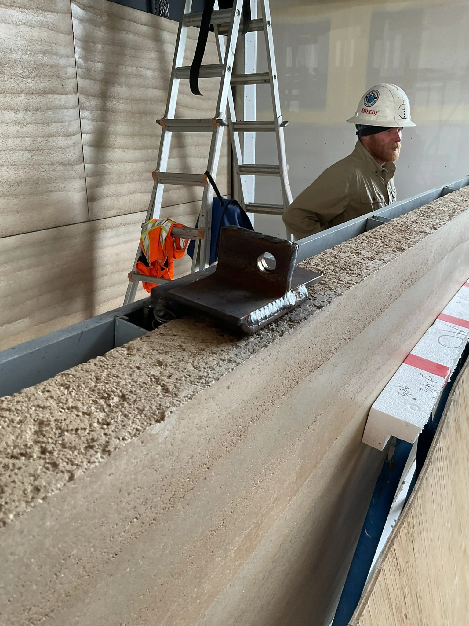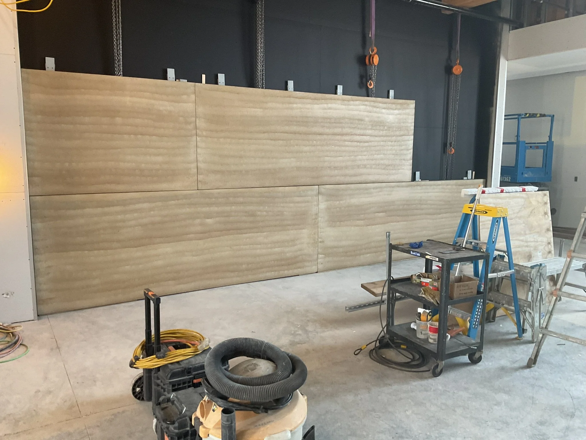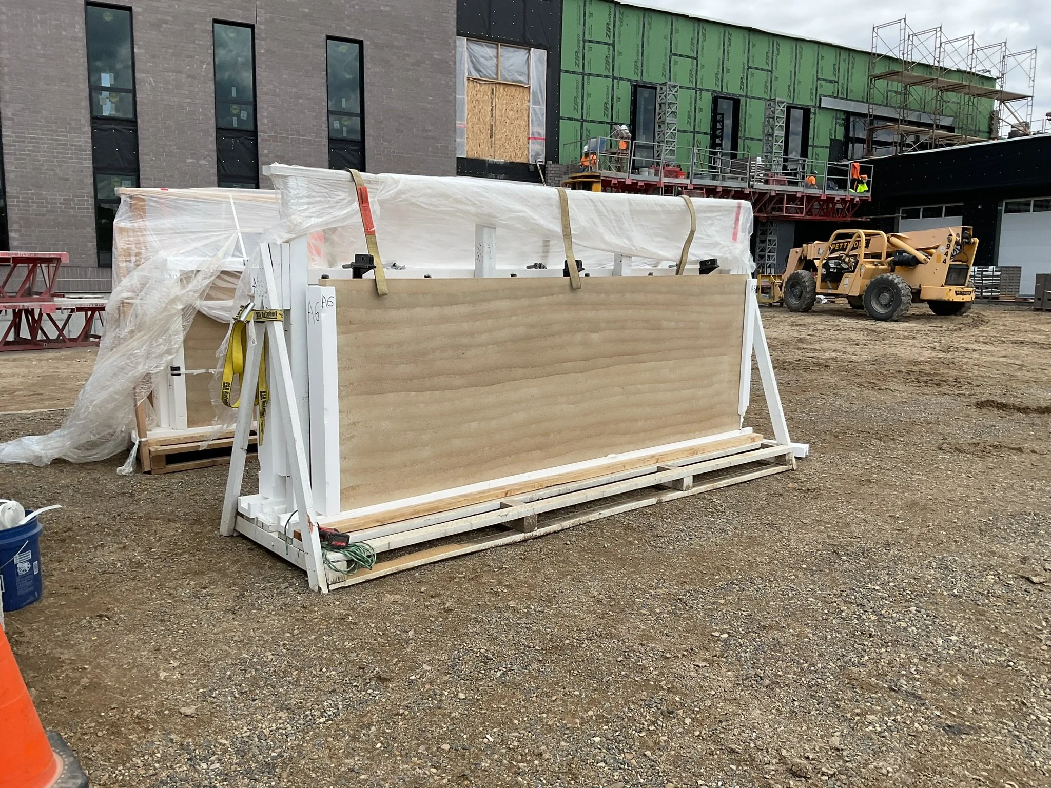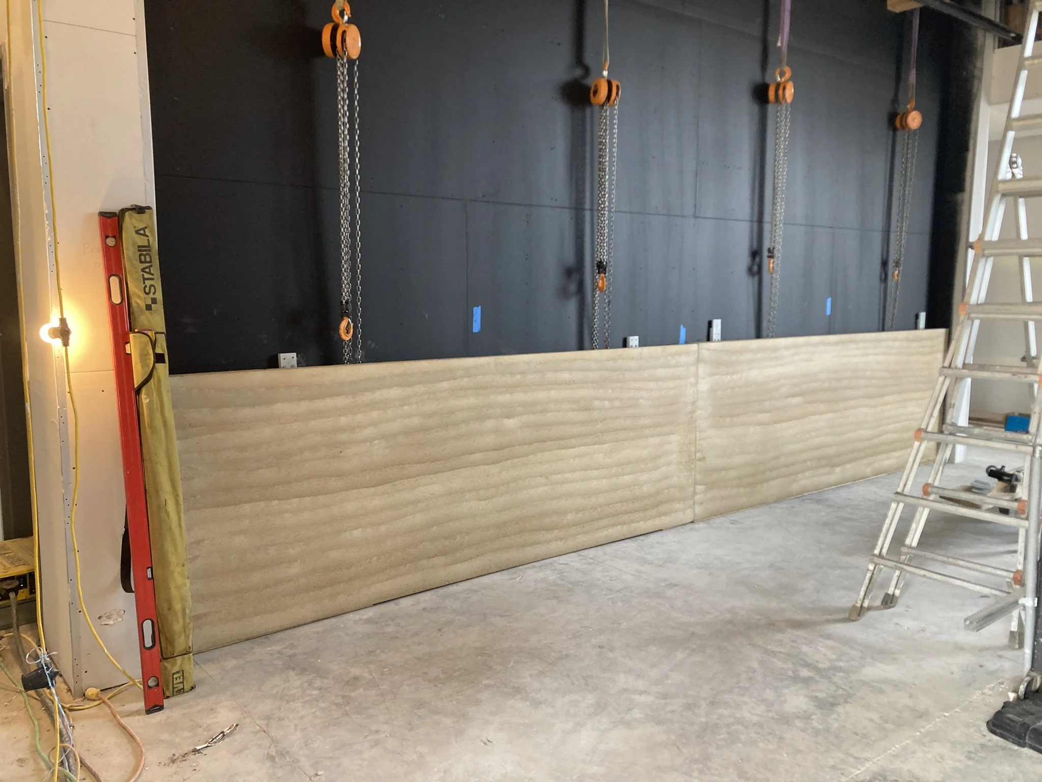 In this project, the client chose to leave the seamlines between the rammed earth panels exposed, highlighting the natural joints as a design feature. A brickwork stacking pattern was used to create a visually striking architectural composition.